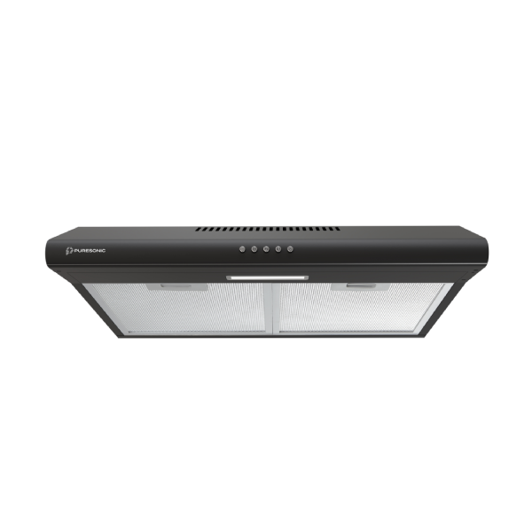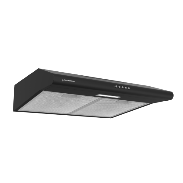 The Puresonic PS-FTBLK6022 is a stylish 60cm cooker hood featuring a durable black matt finish, designed to complement modern kitchen interiors. It supports both duct-out and recirculation modes, offering flexibility for different installation requirements. Equipped with a 3-speed push-button control system and energy-efficient dual LED lighting, it provides bright illumination and convenient airflow adjustment while cooking. The hood includes two aluminium cassette filters along with a charcoal filter to effectively trap grease and absorb cooking odours, ensuring a cleaner and fresher kitchen environment. With a suction power of 200m³/hr, 80W power rating, and included 2m aluminium ducting hose, this model delivers reliable performance with a sleek premium appearance.